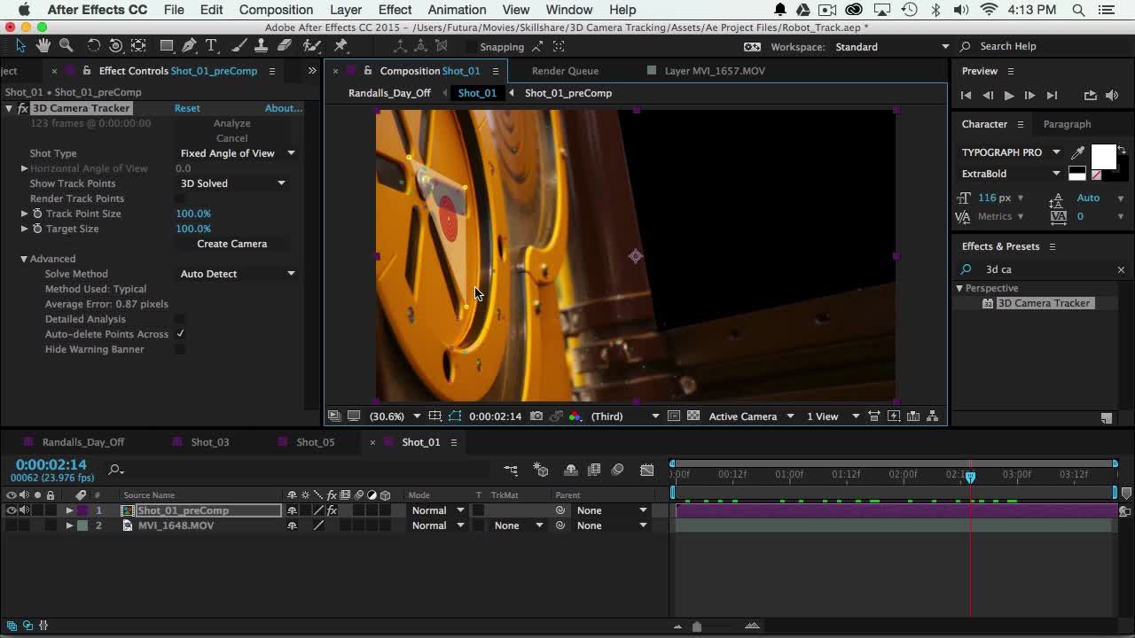 Choose effect > perspective > 3d camera tracker. Once you click track camera, the 3d camera tracker effects will be added to your previously selected layer, and after effects will begin analyzing this layer, counting the percentage of the clip tracked and total number of tracked frames. 01.07.2016 · today justin shows you how to 3d camera track your shot in adobe after effects in under ten minutes!3d camera tracking can be a difficult task when you have. Choose effect > perspective > 3d camera tracker. Wenn ich punkte anzeigen drücke werden die punkte zwar angezeigt aber ich kann nichts auswählen und keinen text und kamera …